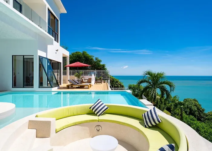 Located nearly a 10-minute ride from the Samui Crocodile Farm, the 6-bedroom Mq 女王海滨别墅(6 Bedroom) Koh Samui offers a terrace with views of the sea. Featuring bicycle rentals, the Koh Samui villa invites guests to visit Fisherman's Village Bophut Outdoor Market, situated approximately 6 km away.
